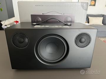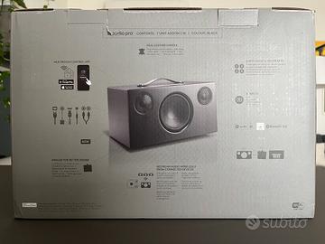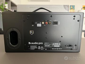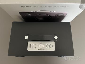 Cassa speaker AudioPro C10 nera come nuova, nessun difetto estetico, tenuta maniacalmente. Permette riproduzione multiroom, ma anche tramite Google Cast e AirPlay 2. Connessione con cavo jack, bluetooth o wifi. Compresi tutti gli imballaggi originali.