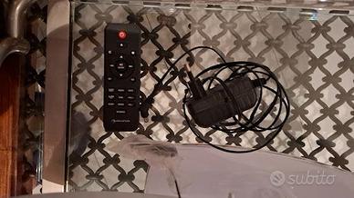 Descrizione: Vendo impianto stereo Auna Blackmask (V-15) in condizioni impeccabili, mai usato. Caratterizzato da un design moderno e ultra-sottile con l'iconico pannello frontale nero "Blackmask". Caratteristiche e Funzioni: Lettore CD: Caricamento verticale motorizzato. Connettività: Porta USB per file MP3, Radio FM e ingresso AUX per collegare smartphone, tablet o PC. Versatilità: Base di appoggio rimovibile; il sistema è predisposto per il montaggio a parete (salvaspazio). Accessori inclusi: Completo di telecomando originale e alimentatore (pari al nuovo). prezzo trattabile