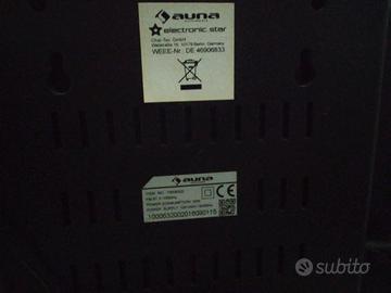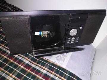 Impianto stereo compatto con interfaccia Bluetooth e lettore CD integrato, altoparlanti Bass Reflex a 2 vie con illuminazione a LED nello spettro cromatico RGB, porta USB, adatto per MP3 e slot SD per la riproduzione di chiavette USB, lettori MP3 e schede di memoria Ingresso AUX per il collegamento di dispositivi esterni come lettori MP3, lettori CD o computer. Sintonizzatore OUC con 20 stazioni di memoria.