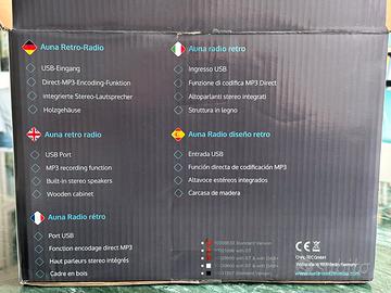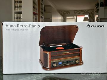 Sistema di riproduzione audio integrato giradischi, MP3, radio, stile retro’, ancora imballato.