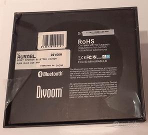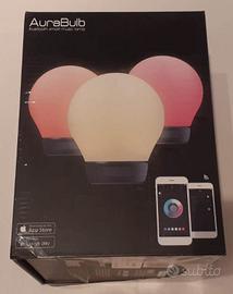 Divoom AuraBulb è una lampada led e speaker altoparlante con funzioni integrate tipo bluetooth, timer, orologio, vivavoce allarme, Smart App (applicazione scaricabile sullo smartphone sia Iphone che Android per regolare i colori), 5 W, autonomia 6 ore, dimensioni 120L x 120W x 147H mm, colori della lampada regolabili: viola - rosso - arancione - blu- verde - giallo , microfono integrato, 1 porta USB, 350g, durante la riproduzione musicale dal telefono crea effetti di luce e lavora come un equalizzatore grazie al display che dispone di led RGB permettendo di giocare coi diversi colori, via microfono incorporato è possibile utilizzare aurabulb come vivavoce per ricevere ed effettuare chiamate. Il dispositivo annuncia in entrata chiamata con segnali acustici e luci lampeggianti. Con il timer è possibile programmare la sveglia e AuraBulb vi sveglierà con piacevole musica e luce che si sceglie. Il dispositivo funziona anche come una luce di notte, in modo da poter impostare la funzione sleep, dove è possibile programmare le canzoni e modalità di colore che favoriscono la formazione di melatonina nel corpo (sostanza che promuovere addormentarsi). Il bulbo è realizzato in materiale siliconico ed è morbido e comprimibile. non devi avere paura di danni ed è indistruttibile. si applica sul piedistallo robusto e solido con altoparlante incorporato, può essere ricaricato tramite un cavo USB che può essere collegato alla rete tramite l'adattatore AC / DC a un computer portatile o un dispositivo PC.