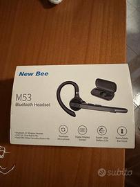 È un auricolare Bluetooth New Bee M53, cioè una cuffia mono wireless che si aggancia all’orecchio e si usa soprattutto per chiamate e videocall a mani libere. Dalle foto della scatola, queste sono le caratteristiche principali: Caratteristiche chiave • Bluetooth 5.1: connessione stabile e basso consumo rispetto alle versioni più vecchie • Doppio microfono con CVC 8.0 + ENC: sistema di cancellazione del rumore per farti sentire bene anche se c'è casino intorno • Microfono rotabile e gancio retrattile: puoi regolarlo per usarlo sull’orecchio destro o sinistro e il gancio si allunga/accorcia • Display digitale: la custodia mostra la percentuale di batteria residua • Batteria lunga durata: sulla scatola dichiara fino a 60 ore. Di solito sono 60h totali con le ricariche della custodia, non di conversazione continua • Custodia di ricarica inclusa: lo riponi e si ricarica, tipo le AirPods