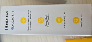 Vendo per inutilizzo cuffie EarFun Air Pro 4 con cancellazione del rumore ibrida. Wireless, Qualcomm Snapdragon Sound, aptX™ Lossless 6 Microfoni, Audio Hi-Res LDAC Fino a 52 Ore di Riproduzione. 11 ore con una singola carica, fino a 52 ore con custodia USB-C. Ricarica rapida: 10 min = 2 ore di ascolto. Possibilità di collegamento in contemporanea a due dispositivi! Spedisco nella confezione originale completa (Auricolari, Cavo, Custodia di ricarica wireless).