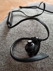 Auricolari Wireless perfetti per fare sport e per l'uso quotidiano anche al lavoro. Il pratico supporto auricolare permettere al dispositivo di restare aderente. Grazie al cordino dietro è possibile lasciare appesi gli auricolari al collo senza intralcio. Si accoppiano a qualsiasi dispositivo.