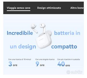* Durata della batteria fino a 40 ore: Carica gli auricolari per 10 minuti prima del tragitto e goditi l'ascolto fino a 3 ore di riproduzione; una volta caricati completamente, gli auricolari ti offriranno fino a 9 ore di ascolto con una singola ricarica, e fino a 40 ore con ricariche multiple in custodia