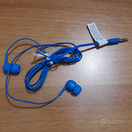 Vendo auricolari blu con filo. Contenuto: x1 auricolare blu; x2 gommini blu da ricambio per auricolari. No perditempo