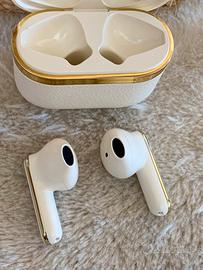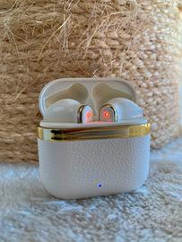Cuffiette poco ingombranti, piccole da portare in tasca. Color beige, cavo ricarica usb c incluso e manuale anche in italiano. Misure in foto.
