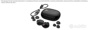 Vendo causa doppio regalo auricolari Auricolari Poly Voyager Free 20 ( Wireless ) nuovi mai aperti, disponibile a spedizione a carico dell’acquirente o scambio a mano presso mio domicilio a Milano. Prezzo poco trattabile