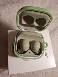 Vendesi coppia di auricolari Samsung Galaxy Buds 2 colore Olive con cover protettiva in silicone colore verde, scatola originale, cavo ricarica e tappi di diverse dimensioni originali. Tutto come nuovo.