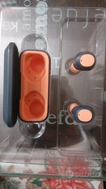 vinyl Skullcandy - Auricolari Bluetooth wireless con microfono, 14 ore di durata totale della batteria, custodia per chiamate in vivavoce e ricarica, resistenti al sudore e all'acqua, colore dark blue-orange, istruzioni e confezione originali.