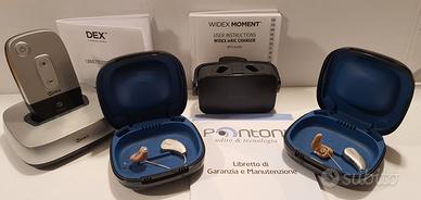 Auricolari WIDEX Mod. RA MOMENT MRIC R D 330 con ricevitori M3R-M3L (dispositivi medici marcati CE e conforme alla Direttiva CEE, DDM 93/42). A corredo caricabatterie WIDEX Mric e dispositivo TV TV-DEX wireless. Prezzo di acquisto marzo 2021 Euro 5.600.