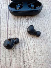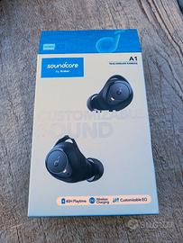 Auricolari nuovi, aperti per fare le foto. soundcore Anker, doppia ricarica wireless e USB, compatti, con tasti fisici adatto ad ogni tipo di sport. Oltre 9 ore di uso con una ricarica completa. Possibilità di usare un sono auricolare. Copri auricolari in silicone di 5 misure differenti. Impermeabili, rimangono stabili nell'orecchio grazie ai vari gommini di diverse misure in dotazione.