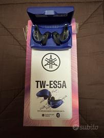 Yamaha TW-ES5A, auricolari true wireless sports, con vestibilita' sicura e confortevole, suono ambientale, resistenza all'acqua e sudore IPX7, colore blue.