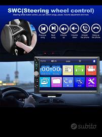 Autoradio da 7 pollici HD 2 Din con touchscreen, supporto Mirror-Link/BT/FM, telecamera retrovisiva, sistema DVR per auto, con cornice SWC Fotocamera.