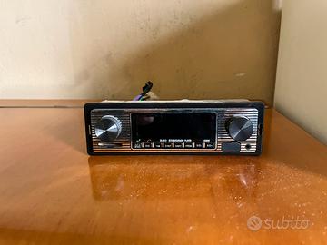 Autoradio perfettamente funzionante completa di telecomando con design vintage perfetto per auto d’epoca perche coniuga design compatibile alle funzioni attuali Ottima per maggiolino, duetto, spider, cinquecento, fulvia, 124