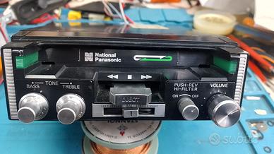 Autoradio cassetta National Panasonic la meccanica funzionante perfettamente cambiata la cinghia le uscite delle casse una si sente piano l'altra funziona ottima per ricambi oppure per collezione.