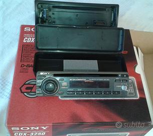 AUTORADIO con CD SONY CDX-3250. Potenza audio 35Wx4. Radio FM/MW/LW. Lettore Disco Frontalino estraibile. Completa di imballo, manuale e connettori. Prezzo da concordare.