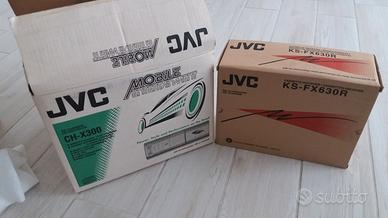 PERFETTE CONDIZIONI. Autoradio JVC cassette modello KS-FX630R + caricatore N.12 CD JVC modello CH X300 (compresa basetta in legno per fissaggio nel baule). Colorazione verde. Per vedere il modello basta digitare i codici e vedere le immagini su internet.