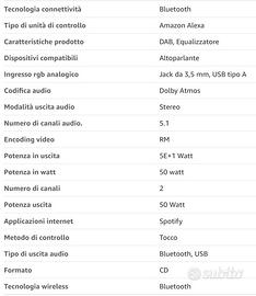 Autoradio DAB con connessione bluetooth allo smartphone. Tra le foto c'è la descrizione delle caratteristiche. In Amazon si trova descrizione estesa. Usata pochissimo. NB: l'antenna DAB non è disponibile (installata su un camper e impossibile da rimuovere senza danneggiarla).