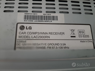 Autoradio LG - LAC2900RN-53W-RDS-MP3,WMA-CDR/RW-18FM-DIGIT/TUNING-.usato poco cablaggio da sistemare(fili posteriori tranciati)usato poco causa tentativo di furto scatolo smarrito, perfetto
