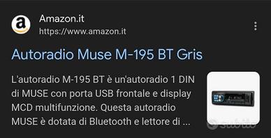 vendo Autoradio Muse M-195 BT Gris. Bluetooth, USB, SD CARD. OTTIME CONDIZIONI.