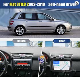 [Android 13 & 2G RAM + 64G ROM] Questa autoradio a doppio din 9” 2.5D touch screen è per Fiat STILO 2002-2010(guida a sinistra). Dispone di 2G di memoria e 64G di spazio di archiviazione, 4 core, con WiFi, Bluetooth, Wireless Carplay e Android Auto, navigazione GPS, funzione di retromarcia, FM/RDS. REGALO: Telecamera di retromarcia + Microfono