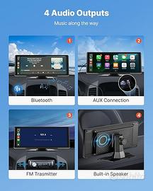 Autoradio Wireless 254 mm, Radio Portatile con Touch Screen, Compatibile con Apple CarPlay e Android Auto, Schermo CarPlay per Auto con Controllo Vocale Bluetooth Navigazione GPS
