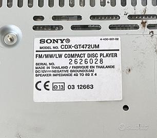 Autoradio Sony CDX-GT472UM, con lettore Cd, frontalino estraibile completo di scocca, già installato su Fiat Panda
