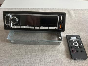Autoradio modello R2418. Supporta la riproduzione di file MP3 tramite porte USB e schede TF. È dotata di sintonizzatore radio FM integrato. Include un telecomando per la gestione a distanza delle funzioni. Dispone di un display digitale e pulsanti fisici per il controllo del volume e della modalità. Solo consegna a mano