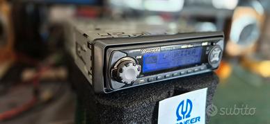 Dalla mia collezione, autoradio mangianastri del 1999. Ideale per youngtimer. Era un modello di fascia medio-alta in quel periodo con la meccanica del mangianastri motorizzata in ingresso ed espulsione. Frontalino abbattibile ed estraibile. Supertuner III™, BSM, Riduzione del rumore Dolby B, predisposizione per caricatore CD, MOSFET45 (45Wx4 canali ad alta potenza), Preout RCA (x2 coppie) (Anteriore/Posteriore) (2V),Chip ad alte prestazioni EEQ, Equalizzatore parametrico a 3 bande, Equalizzatore facile (EEQ), 1 preset di equalizzazione utente. Display EL multicolore. In ottime condizioni estetiche e di funzionamento sia sezione tuner che mangianastri. Completo di gabbia per l'installazione.