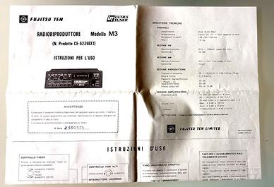 Autoradio vintage marca Fujitsu Ten Modello M3 anni 90 Radio + cassette con plancia di installazione estraibile buona meccanica peso 1,5 Kg libretto originale istruzioni, la radio è stata smontata funzionante e in perfette condizioni tanti anni fa ma poi non è stata più provata, disponibile per eventuali prove se qualcuno sa come provarla e se si trova nei paraggi. Vendo a 70 euro