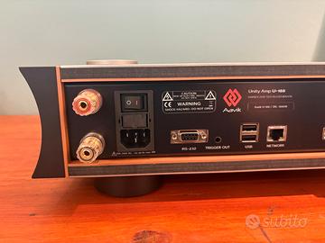 USATO CONDIZIONI PERFETTE POCHI MESI DI VITA TELECOMANDO ed ACCESSORI IMBALLO ORIGINALE in garanzia Aavik U-188, amplificatore all-in-one che trae ispirazione dagli acclamati modelli di punta della serie 880, offrendo prestazioni musicali all'avanguardia in un design completamente nuovo. Progettato per offrire una musicalità eccezionale, l'Aavik U-188 combina uno streamer, un DAC, uno stadio di linea e un amplificatore di potenza in un unico apparecchio meticolosamente progettato. Ogni componente ha uno scopo ben definito, garantendo la minima induttanza, l'isteresi zero e un eccezionale controllo della risonanza per preservare i più fini dettagli musicali. Aavik U-188 è il risultato di una collaborazione unica tra due rinomati designer audio. Lo stimato fondatore di Gryphon Audio, Flemming Erik Rasmussen, si è unito al team di Aavik nel 2021, portando con sé oltre 35 anni di esperienza nella progettazione. Unendo la sua visione artistica con l'innovativo approccio tecnico di Michael Børresen, hanno realizzato gli amplificatori U-188, U-288 e U-588 per offrire non solo un aspetto straordinario, ma anche un'esperienza uditiva eccezionale. L'amplificatore Aavik U-188 si basa sull'ultima versione della tecnologia di amplificazione Pascal in classe D, che presenta una modulazione di commutazione UMAC ancora più rapida che genera meno rumore. Questo circuito richiede ora un filtraggio minore e ha un'impedenza di uscita più bassa, che garantisce un maggiore controllo sui diffusori collegati e prestazioni coerenti sull'intero spettro musicale. Specifiche tecniche Aavik U-188: - Ingresso digitale: 1 x Toslink ottico, 2 x BNC S/P DIF, 1 x USB B - Uscite: 1 x Uscita pre - RCA, 1 uscita per altoparlanti - Connettività: 1 x rete - LAN RJ-45, 2 x USB A: - Ingresso analogico: 2 x linea - RCA - Potenza di uscita 2 x 300 W in 8 Ohm, 2 x 600 W in 4 Ohm - DAC USB: PCM 32-bit 44-384kHz, MQA, DSD64, DSD128 - Bobine di Tesla Ansuz - Bobine di Tesla attive: 36