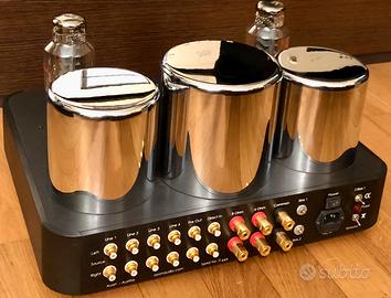 Fantastico, pregiatissimo e rarissimo Ayon Audio Mercury Amplificatore in purissima classe A “STATE-OF-THE-ART” HI-END HI-FI STEREO…..ALLO STATO DELL’ARTE…..costruito con materiali e componentistica selezionatissimi !!!! Ex demo PARI AL NUOVO e con set di valvole NUOVE APPENA MONTATE ANCORA DA RODARE! (che potete vedere in foto). ACCETTO PERMUTE PARZIALI!!! Monta le sensazionali Ayon AA-52B/S , evoluzione muscolosa delle setose Western Electric 300 B!!! Peso 40 KG!!! Dotato di telecomando in alluminio massello e volume motorizzato. Può essere usato come amplificatore integrato con quattro diversi ingressi linea selezionabili frontalmente oppure (visto che è dotato sia di Direct input che di preamplificazione out) come amplificatore finale o Preamplificatore per pilotare altri finali. Per cui può essere inoltre inserito in catene di bi amplificazione, usando la parte valvolare per la medio-alta e l’uscita preamplificata per collegarci un possente finale a stato solido per pilotare al meglio le parti basse. INTROVABILE IN QUESTE CONDIZIONI CON VALVOLE TUTTE NUOVE (dal costo totale di euro 2250!!!!) E A QUESTO PREZZO!!! N.B. ….è possibile acquistarlo anche senza valvole ad euro 3200! Dotato di strumento frontale e commutatore con potenziometri posteriori per la regolazione fine del bias di entrambi i canali!!! TELAIO COMPLETAMENTE IN ALLUMINIO MASSELLO ALTISSIMO SPESSORE. Dotato inoltre di indicatore di Fase a posteriore. Il cablaggio interno è totalmente in PC-OCC monocristallino e le piste in rame sono il più corte possibile per una perfezione sonora superlativa!!! Eroga 30 watt continui in pura CLASSE A per canale su 8 ohm con picchi di 40!!!! Suono davvero ai massimi livelli , con corrente istantanea elevatissima e gamma medio alta ariosa, raffinata e cristallina con una tridimensionalità da primato!!!! Grande controllo anche della gamma bassa!!! AFFARE UNICO IN QUESTE CONDIZIONI E A QUESTO PREZZO!!!!! NO MESSAGGI! SE INTERESSATI LASCIARE NUMERO TELEFONICO.