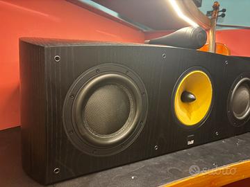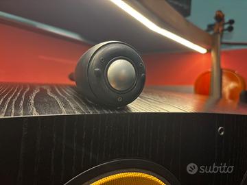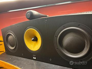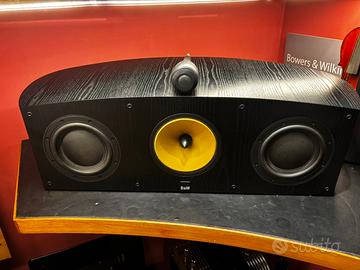 La HTM della serie ’800 è, dunque, una gamma davvero completa ed esaustiva di canali centrali, con la capacità di soddisfare ogni esigenza. Le sempre maggiori richieste prestazionali dei nuovi supporti e delle colonne sonore Home Cinema impongono diffusori di grandi prestazioni e sistemi studiati con cura, non perdendo mai di vista la coerenza timbrica, che è uno dei concetti più importanti nella progettazione di un impianto multicanale che si rispetti. Nel caso della serie ’800 di Bowers & Wilkins, ci troviamo di fronte a prodotti di riferimento assoluto, studiati fin nei minimi dettagli, cosa evidente anche dal grande numero di modelli e di accoppiamenti dedicati, con denominatore comune la qualità a tutto tondo, fonte ispiratrice principale del team progettuale di B&W. Caratteristiche Tecniche : Tweeter a cupola in alluminio un montaggio libero Driver midrange con cono in fibra intrecciata FST di marca Kevlar Woofer a cono Rohacell Custodia con struttura a matrice Porta di flusso Schermatura magnetica Descrizione : Sistema bass-reflex a 3 vie Altoparlanti : 1 tweeter a cupola diamantata da 25 mm 1 midrange da 150 mm di diametro con cono in fibra intrecciata di Kevlar 2 woofer con cono Rohacell da 165 mm di diametro Intervallo di frequenza : Taglio a -6 dB a 35 Hz e 50 kHz Risposta in Frequenza : 42 Hz - 22kHz +/- 3 dB misurati sull' Dispersione : Entro 2 dB della risposta in frequenza Orizzontale: arco di 60 Verticale: arco di 10º Sensibilità : 90 dB/W/m Distorsione armonica : Seconda e terza armonica (90 dB/W/m) <1% 100 Hz- 22kHz <0,5% 120 Hz-20 kHz Impedenza nominale : 8 ohm (minimo 3,2 ohm) Frequenze di crossover : 4kHz, 350Hz Potenza di amplificazione consigliata : 50 W - 250 W su 8 ohm Impedenza massima consigliata del cavo : 0,1 ohm Dimensioni (Altezza x Larghezza x Profondità) : 320 mm x 783 mm x 316 mm (altezza senza Peso Netto: 28kg