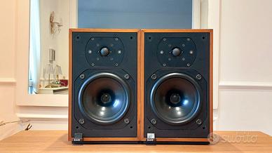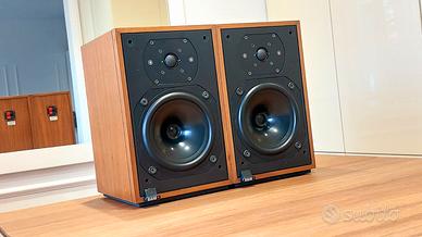-DISPONIBILE- Infoline Whatsapp: 3319906753 Casse acustiche Made in England B&W DM12 anno 1980, in condizioni strepitose altoparlanti originali B&W EURO 340 Sistema a 2 vie in cassa chiusa woofer 180mm, mod. BM150, cono in cellulosa, sospensioni in gomma tweeter 26mm, mod. TW26, cupola in seta impedenza 8 ohm efficienza 85 db potenza minima di utilizzo: 15 watt protezione elettronica da sovraccarico dimensioni 360x220x270mm peso 10 kg cad Le seriose DM12 appartengono ad una filosofia centrata a metà anni 70 e condivisa, pur con ovvie differenze, anche da altri costruttori inglesi. All’epoca le identità sonore dei vari costruttori erano chiare e definite, come se gli stessi si identificassero attraverso un loro suono distintivo. Oggi invece le differenze sonore tra costruttori di casse acustiche si sono praticamente azzerate, il suono è “tutto-avanti” ed un brand vale l’altro. L’esperienza sonora con le DM12 si può definire in questo modo: maturo e drammaticamente realistico. Questo pare una sorta di ossimoro: “maturo” significa noioso e vecchio mentre “drammaticamente realistico” equivale ad un suono monitor e radiografante. Invece no, qui non vi è nulla di noioso o ficcante: è solo radicalmente diverso da quello a cui siamo abituati oggi. Le basse frequenze emesse sono straordinarie per le dimensioni del mobile, mentre l'impostazione timbrica appare calda e misurata, trasparente e poco ruffiana, destinata ad un pubblico con esperienza. Quindi diametralmente opposto al trend odierno. Il loro terreno ideale è la musica classica e se fossimo al teatro alla Scala saremmo seduti in Platea fila R. Questo è il complimento più bello che si possa fare ad un diffusore acustico. Mentre il neofita rimane colpito da sonorità grasse e luminose, l'orecchio smaliziato punta alla sostanza; le DM12 si fanno amare col tempo, cioè dopo che i concorrenti hanno dato tutto e l'effetto WOW è finito. Le altre passano, le vecchie B&W restano.