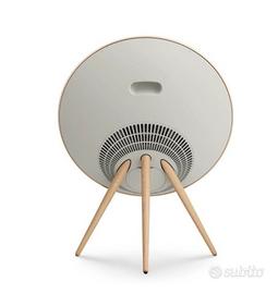 Sistema audio e icona del design contemporaneo, con suono potente e la possibilità di personalizzare il look adattandolo al tuo ambiente. Riproduci musica diversa in stanze diverse oppure ascolta un’unica canzone su tutti i diffusori in tutta la casa. Beoplay A9 è un diffusore multiroom compatibile con Chromecast e Apple AirPlay 2, collegabile a tutti i diffusori che supportano questi formati. Finalmente non dovrai più nasconderlo. Beoplay A9 è stato ideato e realizzato per essere un elegante componente di arredo, risultato di un’attenta selezione dei materiali e della massima cura in ogni dettaglio. Il risultato è un pezzo di design unico che potrai mettere in mostra ovunque. Amplificatore 1 x 400 watt classe D per i bassi 2 x 200 watt classe D per il midrange 2 x 200 watt classe D per il fullrange 2 x 150 watt classe D per gli alti Frequenza 33 - 23.000 Hz Configurazione del diffusore 1 x woofer di 8” 2 x midrange di 3” 2 x fullrange da 1½” 2 x tweeter da ¾" \* Per 3a generazione Livello massimo pressione acustica a 1 m 100 dB SPL Potenza dei bassi 95 dB SPL Dimensioni con stand: Diametro x altezza x ingombro 70,1 x 90,8 x 41,1 cm Peso: 14,7 kg