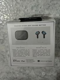 Auricolari Bang & Olufsen Beoplay EX nuovi, mai usati, ancora sigillati. Bluetooth, cancellazione attiva del rumore, 6 microfoni, impermeabili, autonomia fino a 28 ore. Inclusi cavo USB-C e custodia. Colore Anthra/Oxy.