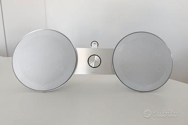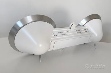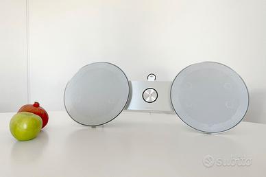 Il BeoSound 8 è uno degli speaker più iconici di Bang & Olufsen, progettato dal designer David Lewis. Combina linee minimaliste e materiali di alta qualità con un suono potente, pulito e bilanciato, tipico dell’eccellenza acustica del marchio danese. Si tratta della versione originale 2011, in colore bianco con inserti in alluminio. È un sistema audio attivo pensato per dispositivi Apple (iPod, iPhone, iPad) con connettore a 30 pin ma si può anche collegare ad altri fonti con l’ingresso audio.