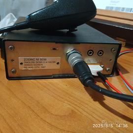 Ricetrasmittente/Baracchino veicolare / tavolo. Marca Zodiac tipo M5036; 40 canali, volume, squelch, tasti FM/AM e CB/PA. Poco usato, funzionante, non utilizzato da anni. Completo di microfono Zodiac con due interruttori per funzioni vari. Senza spinetta alimentazione.