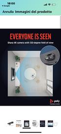 VIDEOCAMERA: la tecnologia Poly DirectorAI inquadra automaticamente la sala o segue la persona che parla; il campo visivo di 120° e la definzione 4K consentono di vedere al meglio tutti i partecipanti