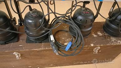 Vendo Coppia di Barre con fari led composte da 4 rgbw fari led par 56 e 4 fari led rgbw par 64 cablati su 2 barre DMX con tutta la cavetteria, cavi di alimentazione da 5 MT a baionetta e 2 custodie in legno su misura con adattatori per americana.