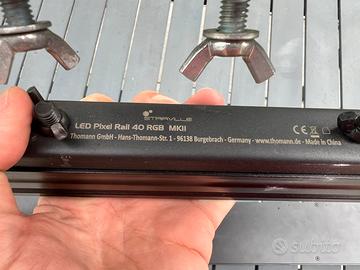 Vendo materiale come da descrizione, funzionante senza scatole e manuali. N’1 Stairville LED Pixel Rail Drive 640 MKII. N’3 barre LED Pixel Rail 40 RGB MKII N’1 dmx recorder DR-1