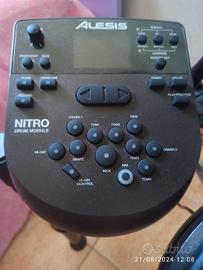 Batteria Alesis Nitro Completa con 8 Pad (3 tom, 1 rullante, 3 piatti, pedale hi-hat + pedale gran cassa) completa di sgabello, 385 Suoni, 40 Kit, Rullante Bi-Zona, 60 Canzoni di Accompagnamento, Uscita MIDI. Comprata su Amazon e usata solo due volte, nessun segno di usura come si vede dalle foto.Euro 250