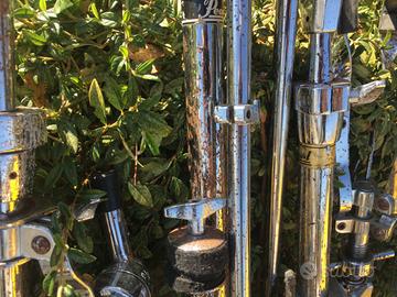 Batteria Pearl vecchia da rimettere a posto/pulire ma perfettamente funzionante. 10 piatti di marca (crash-china-charleston-ride), doppio pedale iron cobra, meccaniche arrugginite da pulire come in foto.