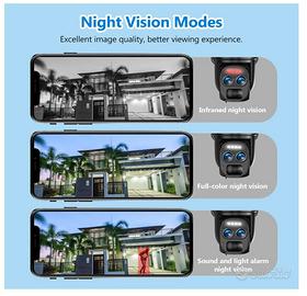 Caratteristica specialeTecnologia PTZ, Visione notturna 【Immagini 4K HD & Visione Notturna a Colori】Telecamera-wifi esterno senza fili offrono 4K (3840*2160) full HD, immagini e video più nitidi da 8 MP rispetto ad altre telecamere di sicurezza 1080P giorno o notte. 3 modalità di visione notturna per scegliere. Il sensore CMOS integrato e le luci IR rilevano automaticamente la luce ambientale e passano alla modalità di visione notturna a colori, visualizzano dettagli più chiari e immagini a colori anche in pitch dark fino a 65 ft!