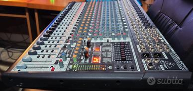 Behringer SX2442FX, doppio DSP. Acquistato nuovo e in garanzia fino al 26 Aprile 2027. Imballo, accessori originali. Utilizzato esclusivamente in Home Studio. Caratteristiche principali 16 preamplificatori microfonici XENYX comparabili a preamplificatore stand-alone EQ 3-Bande "British" con banda dei medi semi-parametrica 2 Processori FX 24-bit stereo con 99 preset, tra cui riverbero, chorus, flanger, delay, pitch shifter e multieffetti vari EQ grafico 9 bande stereo ad alta precisione Rivoluzionario sistema di rilevamento feedback FBQ rivela istantaneamente le frequenze critiche Peak LED, Mute, Main mix e subgroup routing Switch, funzioni Solo e PFL su tutti i canali 2 Canali di ingresso stereo con EQ a 4 bande più 2 ulteriori canali di ingresso stereo con controlli Level e pre-fader Aux Inserti su ogni canale mono e main mix per il collegamento di apparecchiature esterne 4 Uscite Subgroup e output mono supplementari con filtro passa-basso regolabile per subwoofer 4 Mandate Aux per canale: 2 pre/post fader per monitoraggio/applicazione FX, 2 post fader (FX interni o send esterna) Uscite Bilanciate Main Mix jack 1/4" e connettori XLR placcati in oro, Control Room separata, uscite cuffie stereo e Tape Funzioni Solo-In-Place e Pre-Fader-Listen più sezione Talkback completa Switch standby disattiva tutti i canali durante le pause Fader 60mm logaritmico e comandi rotativi sigillati Dimensioni: 682 x H100 x 410mm Peso: 8,6kg Tel 392.5353261 - 339.3036644