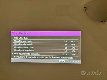 Lampada utilizzata per sole 135 ore complessive nelle diverse modalitá (379h equivalenti), come mostrato in foto.