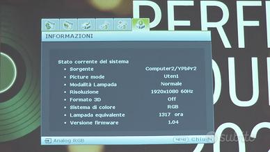 Vendo per passaggio a sistema 4K il mio fedele BenQ W1070, proiettore che ha fatto la storia dell'Home Cinema per l'incredibile qualità dei colori e la nitidezza Full HD. STATO DELL'APPARECCHIO: Il proiettore a livello di ottica e di immagine proiettata è PERFETTO: colori brillanti, nessuna macchia e ottima luminosità. Nota tecnica sulla connettività: Le porte HDMI integrate non sono funzionanti. Il proiettore viene utilizzato regolarmente tramite l'ingresso VGA, che supporta comunque l'alta definizione. KIT SOLUZIONE INCLUSO NEL PREZZO: Per rendere il proiettore pronto all'uso immediato con qualsiasi sorgente moderna (PC, Blu-ray, Console, Sky), includo nel prezzo tutto il necessario: Adattatore convertitore da HDMI a VGA (permette di collegare cavi HDMI standard). Cavo professionale HDMI da 15 metri di alta qualità. Telecomando originale e cavo di alimentazione. CARATTERISTICHE: Risoluzione Full HD 1080p. Tecnologia DLP per neri profondi. Supporto 3D. Lens Shift verticale (comodissimo per l'installazione). È la soluzione ideale per chi vuole un grande schermo cinematografico spendendo pochissimo, avendo già tutto il kit di cavi pronto per l'installazione a soffitto o su mensola