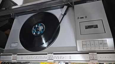 Rarissimo e bellissimo sistema HIFI compatto vintage della nota casa danese Bang & Olufsen Beocenter 4600. Completamente originale e funzionante in tutti i suoi componenti (radio, giradischi e cassette). Anno 1979. Piccoli e inevitabili segnetti del tempo presenti sul coperchio. Completo di diffusori B&W type S22 ben suonanti. Apparecchio di design e di soluzioni tecniche all'avanguardia per il tempo in cui è stato prodotto. Il giradischi ad esempio è completamente automatico e permette la funzione tasto "pausa", la funzione "turn" che permette di far girare il piatto per la pulizia del disco. Provvisto di testina dedicata B&W MMC20 E (il cui solo costo supera i 200 euro) Gradita prova prima dell'acquisto. Non spedisco, considerata la delicatezza, il peso e l'ingombro. Prezzo non trattabile.