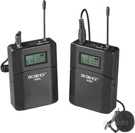 Beschoi 70M Wireless Microfono Telecamera UHF Remota Lavalier Ricevitore MIC a Basso Rumore + Trasmettitore per Fotocamere DSLR Videocamera Registratore Audio